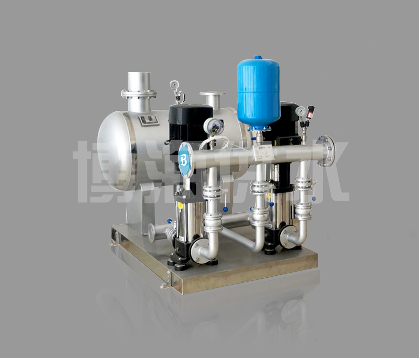 無塔供水設備是根據客戶的實際情況,通過檢測實際工作壓力與設定壓力比較,當市政管網疊壓高于設定壓力時,機組處于停機狀態,自來水可通過市政管線直接對用戶供水,當管網供水壓力低于設定壓力時,無塔供水器自動進入疊壓工作狀態,機組通過壓力傳感器,水泵及恒壓變頻控制柜組成閉環控制系統,隨著用水量的變化,不斷調整水泵轉速及投入運行的水泵臺數,以保持供水壓力恒定,徹底解決二次供水中水質被污染的問題。